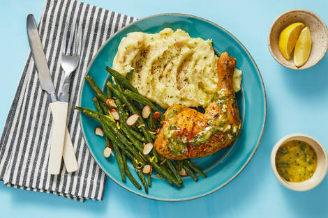 with Scallion Mashed Sweet Potatoes & Green Beans Amandine