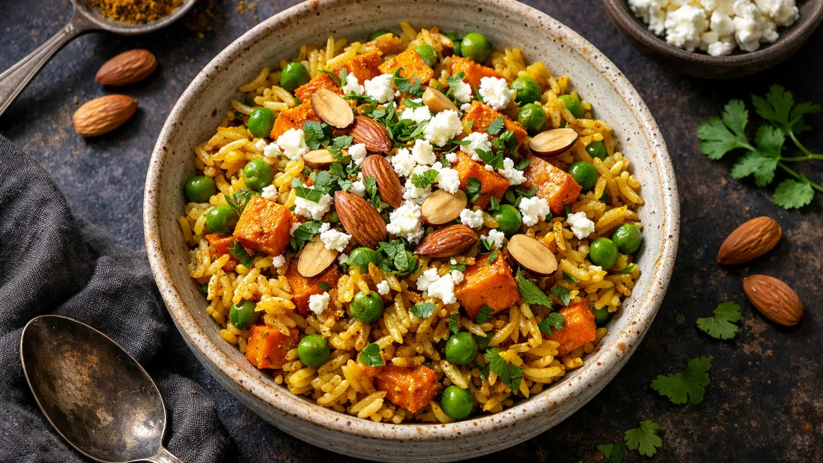 with Pea-Studded Rice from Chef Sahni