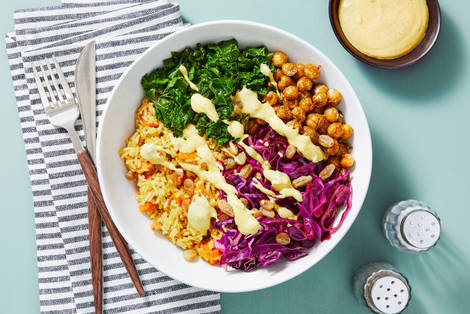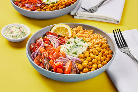 with Roasted Veggies, Cucumber Raita & Garlic Basmati Rice