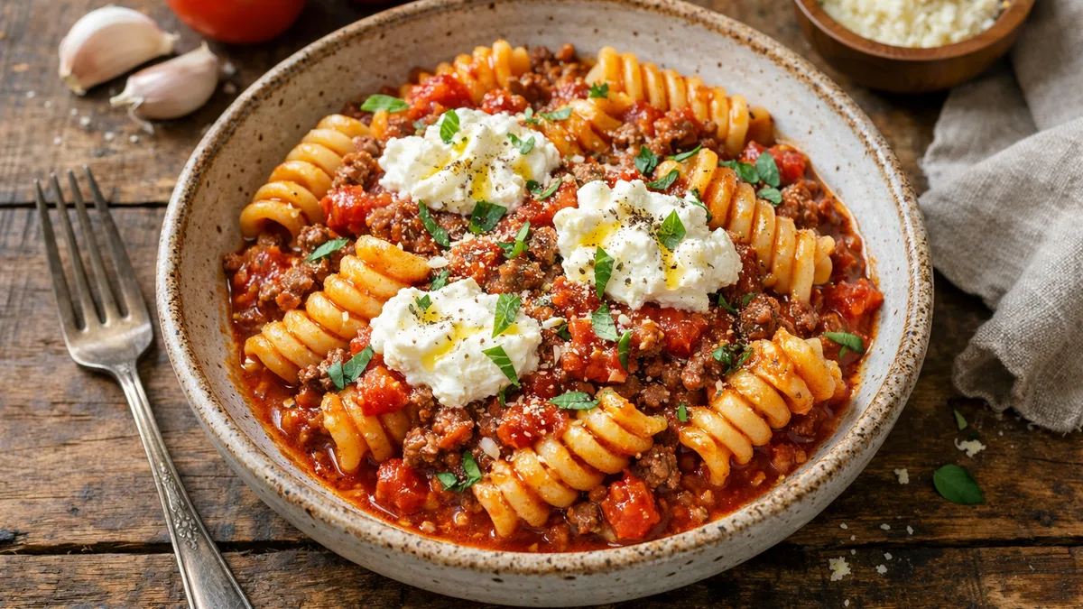 with Beef, Homemade Marinara, and Fresh Ricotta
