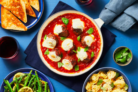with Parmesan Meatballs, Tortelloni, Green Beans & Garlic Ciabatta