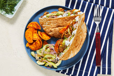 with Tzatziki and Turkish-Spiced Sweet Potatoes
