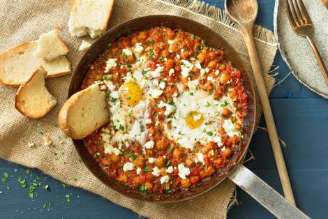 with Chickpeas, Feta Cheese, and Chili Flakes
