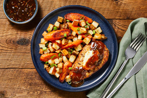 with Garlic Roasted Carrots & Asparagus