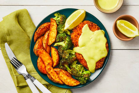 with Sriracha Lime Mayo and Sweet Potato Wedges