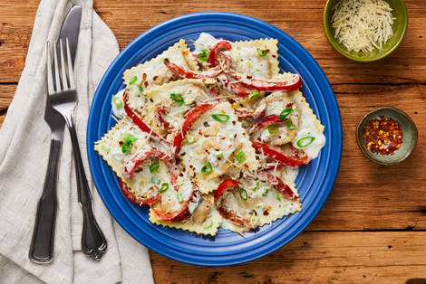 in a Creamy Garlic Sauce with Roasted Bell Pepper & Parmesan