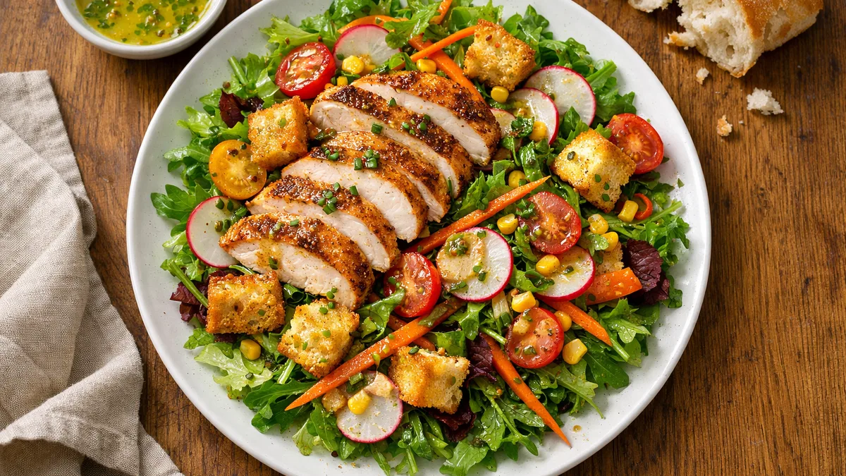 with Seared Chicken, Garlic Croutons, and Mustard-Chive Vinaigrette