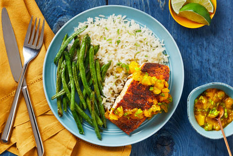 with Scallion Rice & Roasted Green Beans