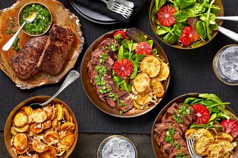 with Crispy Parmesan Potato Rounds and Blood Orange Salad