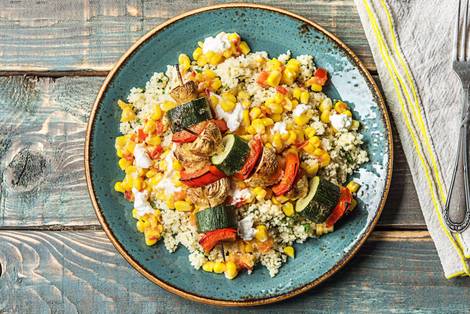 Over Herbed Couscous with a Corn Feta Relish