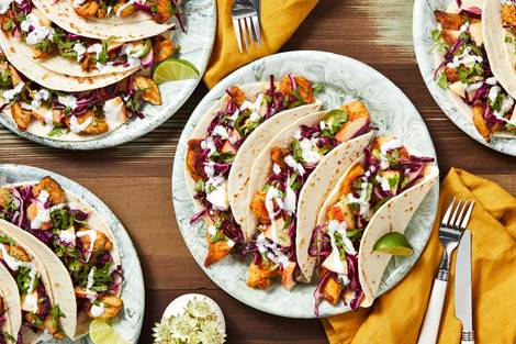 With a Spicy Apple Cabbage Slaw and Lime Crema