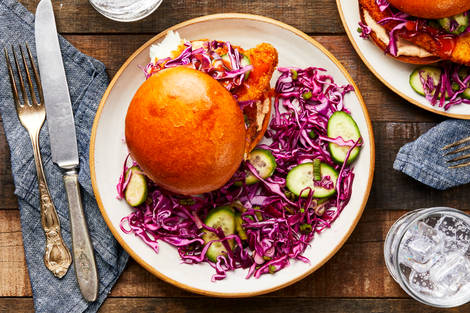 with Spicy Sauce and Cabbage Cucumber Slaw