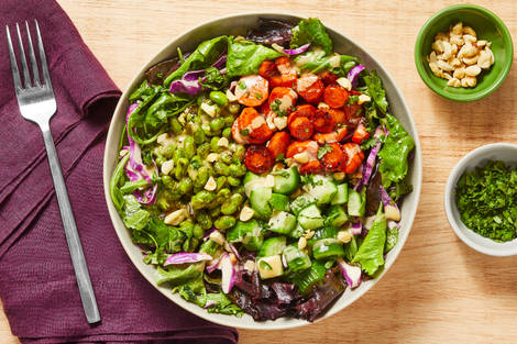 with Creamy Coconut Veggies, Peanuts & Lime Rice