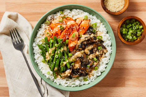 with Bell Pepper, Green Beans, Lemony Rice & Hummus Sauce