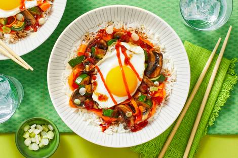 with Sweet Potato, Scallion Rice & a Fried Egg