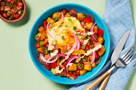 with Sweet Potato, Scallion Rice & Fried Eggs