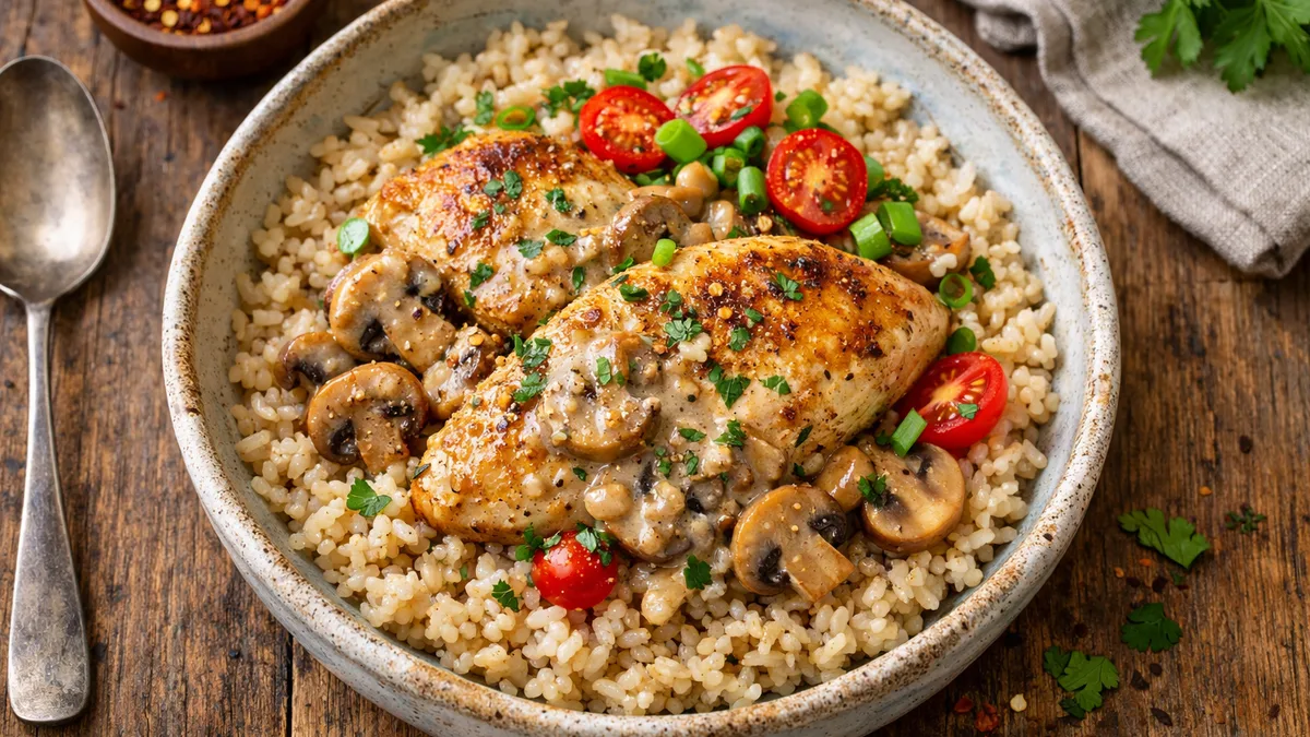 with Dijon Mushroom Sauce and Brown Rice