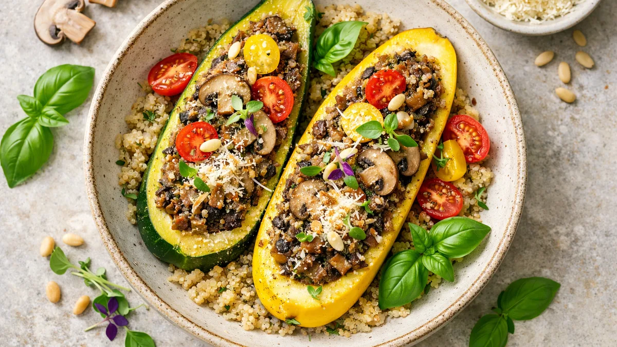 with Mushroom Duxelles, Quinoa, and Parmesan