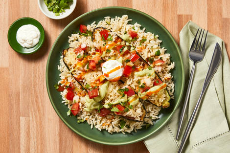 with Chicken Thighs, Pico de Gallo, Avocado Crema & Cilantro