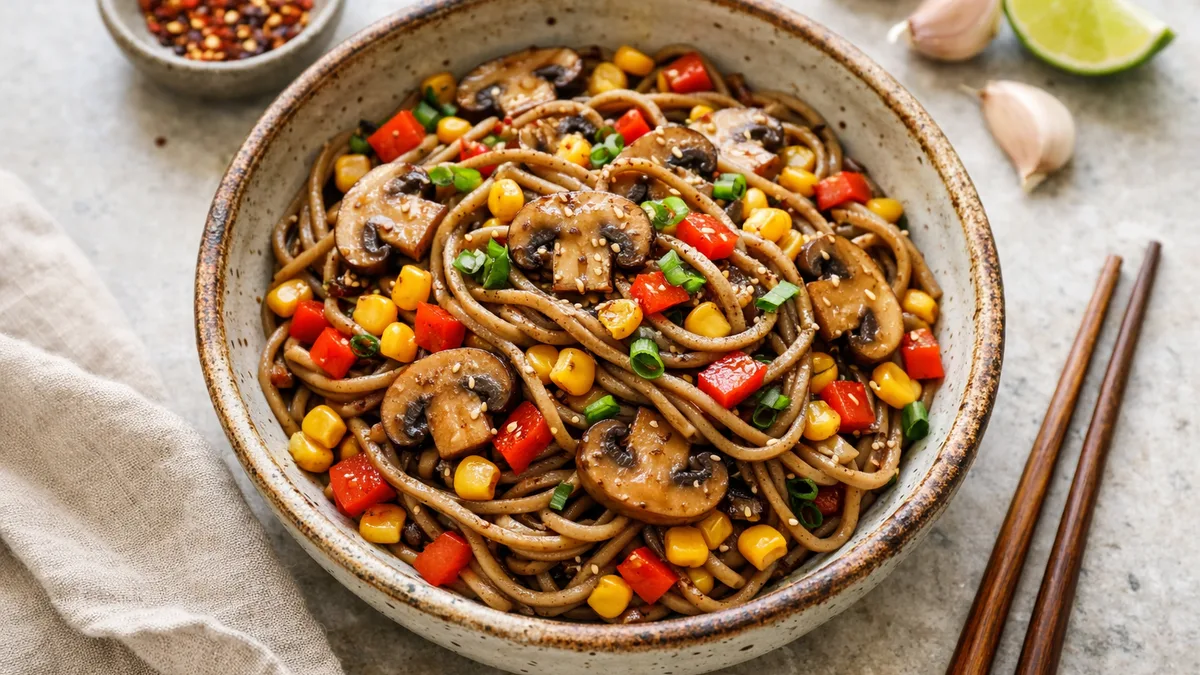 with Corn, Mushrooms & Red Pepper