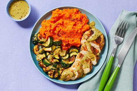 with Smashed Carrots & Roasted Zucchini