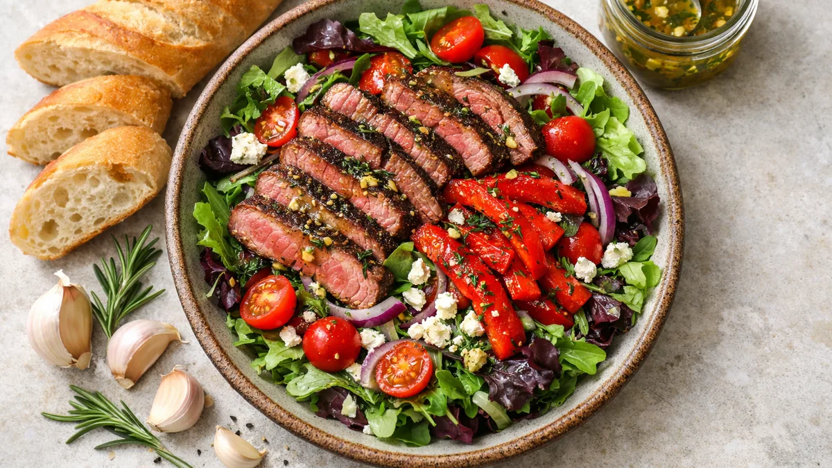 with Roasted Red Peppers & Rosemary-Garlic Vinaigrette