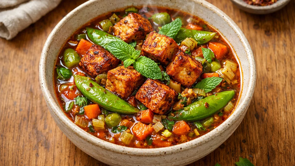 with Sugar Snap Pea Sofrito & Fresh Mint