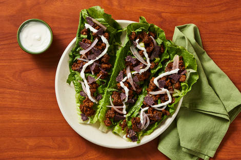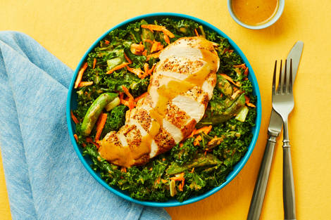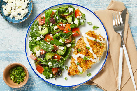 with Scallion Cauliflower Rice, Ponzu Green Beans & Sriracha Mayo