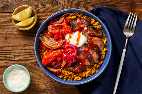 with Chicken Thighs, Bell Pepper & Lemon-Cilantro Sauce