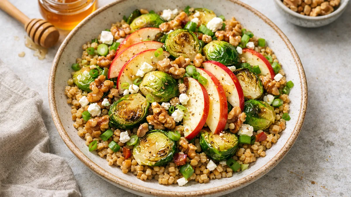 with Garlic Scallion Couscous & Lemony Roasted Brussels Sprouts