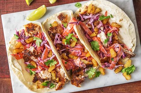 with Pineapple Salsa and Red Cabbage Slaw