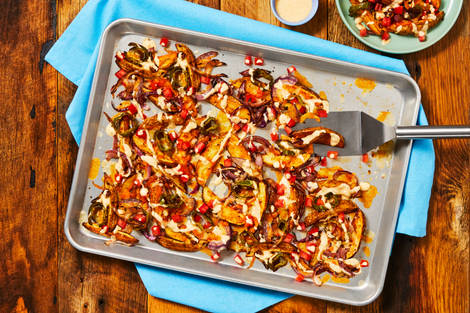 with Loaded Potato Wedges, Crispy Buffalo Onion Straws & Blue Cheese Sauce
