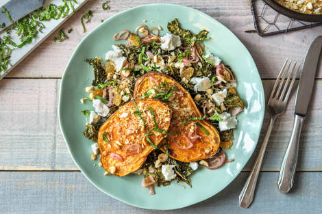 with Crispy Kale, Hazelnut Crumbs, and Feta