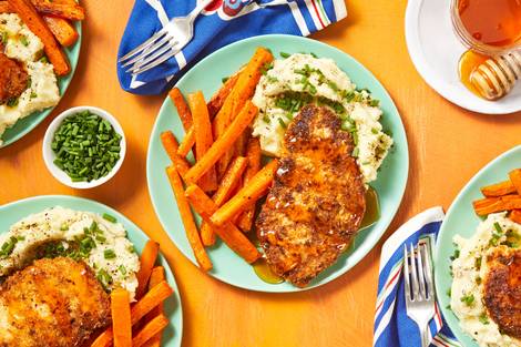 with Carrot Fries and Chive Mashed Potatoes
