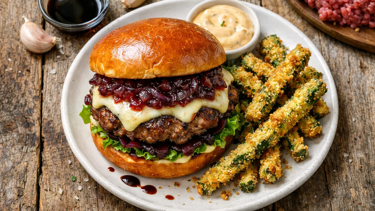 with Red Onion Marmalade and Crispy Zucchini Fries