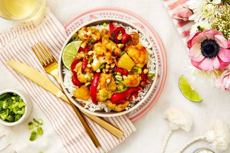 with Bell Pepper, Pineapple, and Sweet and Sour Sauce