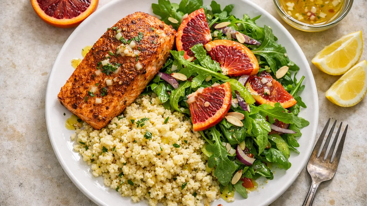 with Blood Orange-Arugula Salad, Couscous, and Lemon-Shallot Vinaigrette