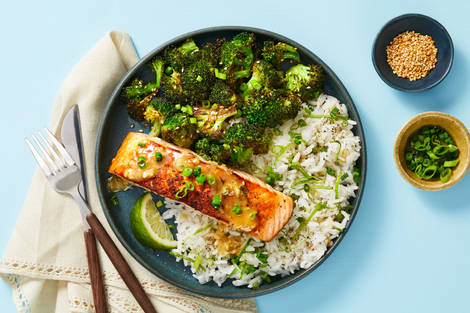 with Scallion Rice & Roasted Sesame Broccoli