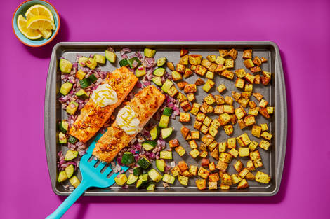 with a Roasted Veggie Jumble & Lemon Crème Fraîche