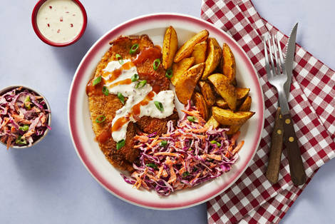 with Potato Wedges, Cabbage Slaw & Spicy Remoulade