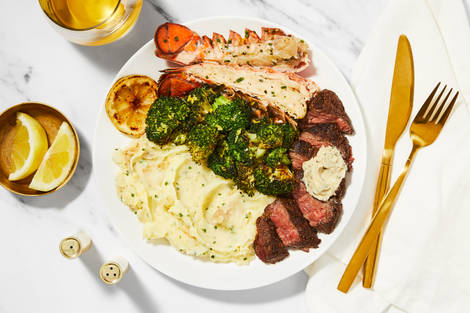 with Garlic Mashed Potatoes and Lemony Brussels Sprouts