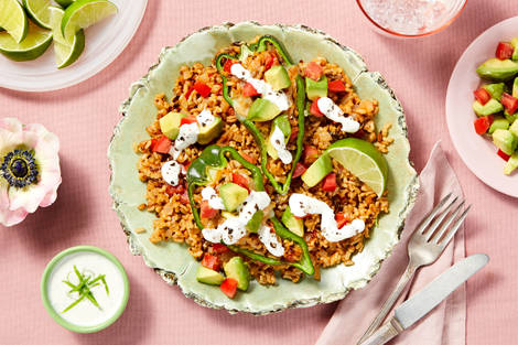 with Charred Bell Pepper, Lime Crema, and Pickled Jalapeño